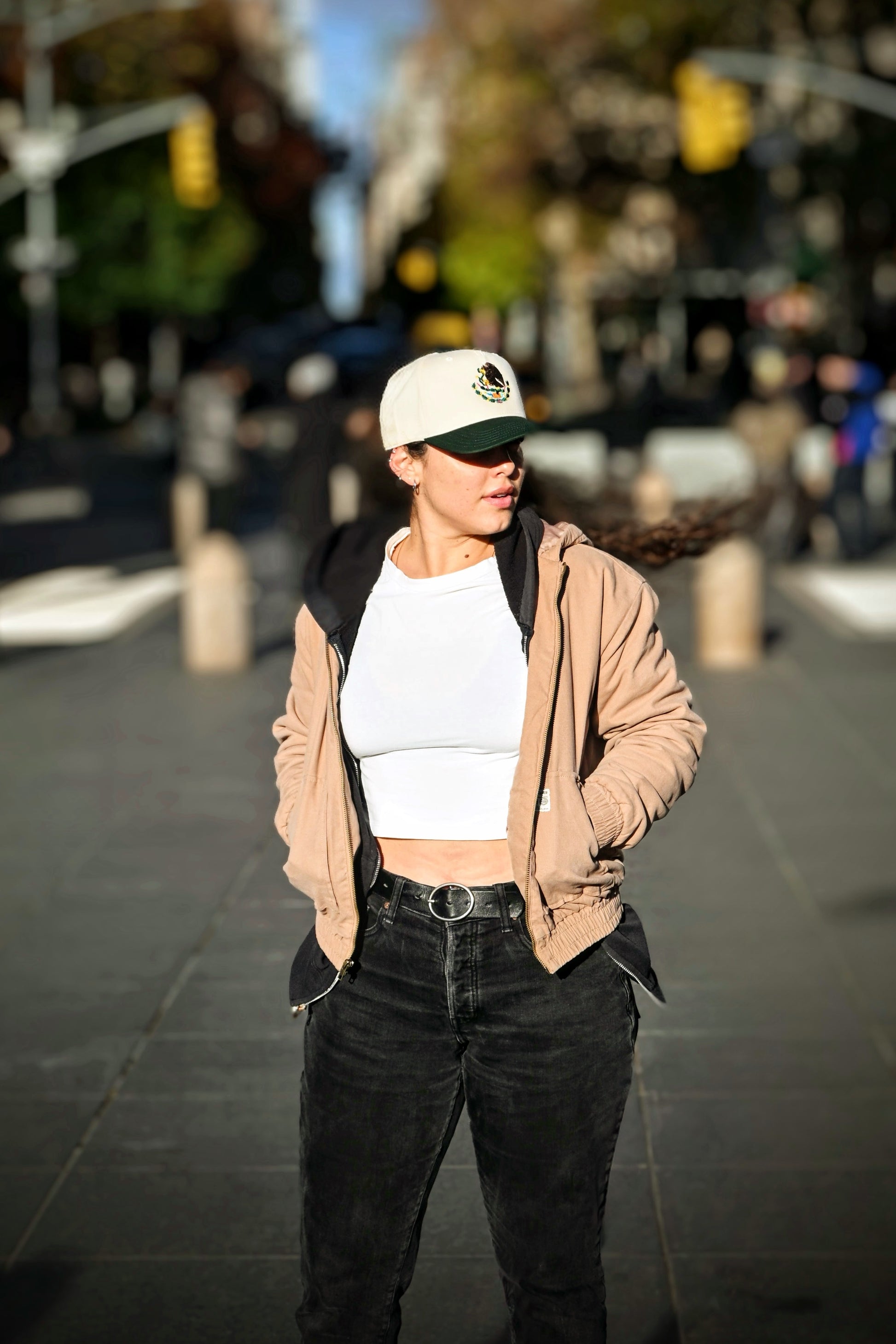 This version features a clean natural crown paired with a rich forest green brim — repping tierra y raíz. The metallic gold GenUno emblem on the side adds that extra shine, while the back says what we’re all thinking: “Viva México.”